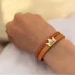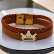 Archin İpek İsmine Özel Taç Motifli 14 Ayar Altın Plakalı Kahverengi Derili Hediye Bileklik-467isim İpek