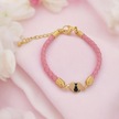 Archin Kedi Temalı Pembe Derili Kalp Figürlü 14 Ayar Altın Plakalı Hediye Bileklik-473sembol Kedi