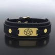 Archin Köşeli Yıldız Temalı 14 Ayar Altın Plakalı Doğal Siyah Derili Oval Motifli Hediye Bileklik-438sembol Beş Köşeli Yıldız