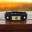 Archin Kral Aslan Temalı Oval Motifli 14 Ayar Altın Plakalı Doğal Siyah Derili Hediye Bileklik-438sembol Kral Aslan