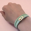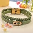 Archin Krallık Tacı Temalı Kalp Motifli 14 Ayar Altın Plakalı Doğal Yeşil Derili Hediye Bileklik-556sembol Krallık Tacı