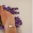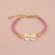 Archin Kübra İsmine Özel 14 Ayar Altın Plakalı Doğal Pembe Derili Kelebek Motifli Hediye Bileklik-429isim Kübra