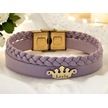 Archin Leyla İsmine Özel Doğal Mor Derili Taç Figürlü 14 Ayar Altın Plakalı Hediye Bileklik-637isim Leyla