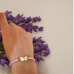 Archin Leyla İsmine Özel Doğal Pembe Derili Kelebek Motifli 14 Ayar Altın Plakalı Hediye Bileklik-429isim Leyla