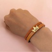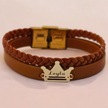 Archin Leyla İsmine Özel Kahverengi Derili Taç Motifli 14 Ayar Altın Plakalı Hediye Bileklik-467isim Leyla