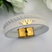 Archin N Harfine Özel Taç Motifli 14 Ayar Altın Plakalı Hakiki Beyaz Derili Hediye Bileklik-645harf N