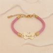 Archin Nazlı İsmine Özel 14 Ayar Altın Plakalı Doğal Pembe Derili Kelebek Motifli Hediye Bileklik-429isim Nazlı