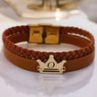 Archin O Harfine Özel 14 Ayar Altın Plakalı Kahverengi Derili Taç Motifli Hediye Bileklik-467harf O