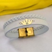 Archin Ö Harfine Özel Hakiki Beyaz Derili Taç Motifli 14 Ayar Altın Plakalı Hediye Bileklik-645harf Ö