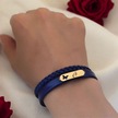 Archin Ö Harfine Özel Lacivert Derili Kelebek Motifli 14 Ayar Altın Plakalı Hediye Bileklik-616harf Ö