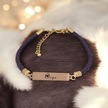 Archin Özge İsmine Özel Mor Derili 14 Ayar Altın Plakalı Dikdörtgen Motifli Hediye Bileklik-412isim Özge