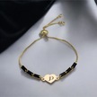 Archin P Harfine Özel 14 Ayar Altın Plakalı Kalp Figürlü Siyah Taş Desenli Hediye Bileklik-351harf P