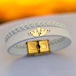 Archin P Harfine Özel Taç Motifli 14 Ayar Altın Plakalı Hakiki Beyaz Derili Hediye Bileklik-645harf P