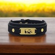 Archin Panda Temalı 14 Ayar Altın Plakalı Doğal Siyah Derili Oval Motifli Hediye Bileklik-438sembol Panda