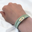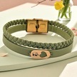 Archin Panda Temalı 14 Ayar Altın Plakalı Zeytin Yeşili Derili Kalp Motifli Hediye Bileklik-556sembol Panda