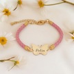 Archin Pelin İsmine Özel Kelebek Motifli 14 Ayar Altın Plakalı Doğal Pembe Derili Hediye Bileklik-429isim Pelin
