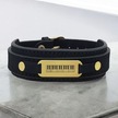 Archin Piyano Temalı Oval Motifli 14 Ayar Altın Plakalı Doğal Siyah Derili Hediye Bileklik-438sembol Piyano