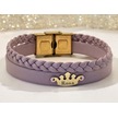 Archin Rosa İsmine Özel 14 Ayar Altın Plakalı Doğal Mor Derili Taç Figürlü Hediye Bileklik-637isim Rosa