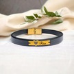 Archin Rüya İsmine Özel Hakiki Siyah Derili Kalp Figürlü 14 Ayar Altın Plakalı Hediye Bileklik-568isim Rüya
