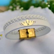 Archin S Harfine Özel Hakiki Beyaz Derili Taç Motifli 14 Ayar Altın Plakalı Hediye Bileklik-645harf S