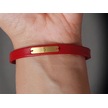 Archin Ş Harfine Özel Kırmızı Derili Dikdörtgen Motifli 14 Ayar Altın Plakalı Hediye Bileklik-548harf Ş