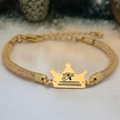 Archin Şans Temalı Hasır Kordonlu Taç Figürlü 14 Ayar Altın Plakalı Hediye Bileklik-464sembol Horus Gözü