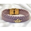 Archin Seda İsmine Özel Doğal Mor Derili Taç Figürlü 14 Ayar Altın Plakalı Hediye Bileklik-637isim Seda
