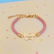 Archin Şeyma İsmine Özel Kelebek Motifli 14 Ayar Altın Plakalı Doğal Pembe Derili Hediye Bileklik-429isim Şeyma