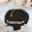 Archin Sonsuz Kelebek Temalı Mor Derili 14 Ayar Altın Plakalı Dikdörtgen Motifli Hediye Bileklik-412sembol Sonsuz Kelebek