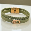Archin Sonsuzluk Temalı 14 Ayar Altın Plakalı Zeytin Yeşili Derili Kalp Motifli Hediye Bileklik-556sembol Sonsuz Kalp