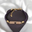 Archin Taç Temalı Dikdörtgen Motifli Mor Derili 14 Ayar Altın Plakalı Hediye Bileklik-412sembol Taç Sembolü