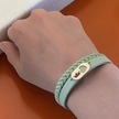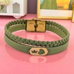 Archin Taç Temalı Kalp Motifli 14 Ayar Altın Plakalı Zeytin Yeşili Derili Hediye Bileklik-556sembol Taç