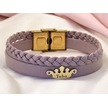 Archin Tuba İsmine Özel 14 Ayar Altın Plakalı Doğal Mor Derili Taç Figürlü Hediye Bileklik-637isim Tuba
