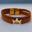 Archin Tuba İsmine Özel 14 Ayar Altın Plakalı Kahverengi Derili Taç Motifli Hediye Bileklik-467isim Tuba