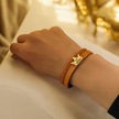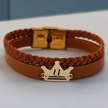 Archin U Harfine Özel Kahverengi Derili Taç Motifli 14 Ayar Altın Plakalı Hediye Bileklik-467harf U