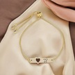 Archin Ü Harfine Özel Kalp Motifli 14 Ayar Altın Plakalı Zincirli Hediye Bileklik-432harf Ü