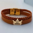 Archin Ü Harfine Özel Taç Motifli 14 Ayar Altın Plakalı Kahverengi Derili Hediye Bileklik-467harf Ü