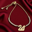Archin V Harfine Özel 14 Ayar Altın Plakalı Beyaz Taş Detaylı Kuğu Kuşu Motifli Hediye Bileklik-601harf V