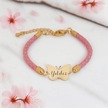 Archin Yıldız İsmine Özel Kelebek Motifli 14 Ayar Altın Plakalı Doğal Pembe Derili Hediye Bileklik-429isim Yıldız