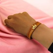 Archin Yıldız İsmine Özel Taç Motifli 14 Ayar Altın Plakalı Kahverengi Derili Hediye Bileklik-467isim Yıldız