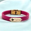 Archin Zeynep İsmine Özel 14 Ayar Altın Plakalı Doğal Pembe Derili Kelebek Figürlü Hediye Bileklik-651isim Zeynep