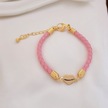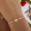 Archin Zülfikar Temalı Kalp Figürlü 14 Ayar Altın Plakalı Pembe Derili Hediye Bileklik-473sembol Zülfikar