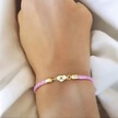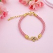 Archin Zülfikar Temalı Kalp Figürlü 14 Ayar Altın Plakalı Pembe Derili Hediye Bileklik-473sembol Zülfikar Sembolü
