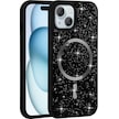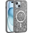 Ardemix İphone Uyumlu 14 Kılıf Pırlanta Tasarımlı Magsafe Şarj Özellikli Mozaik Silikon Kap Gri