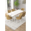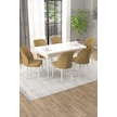 Arel Beyaz 80x132 Açılabilir Mdf Masa Yemek Odası Takımı, Mutfak Takımı 6 Adet Sandalye Beyaz Masa - 6 Cappuccino - Beyaz Ayak