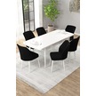 Arel Beyaz 80x132 Açılabilir Mdf Masa Yemek Odası Takımı, Mutfak Takımı 6 Adet Sandalye Beyaz Masa - 6 Siyah - Beyaz Ayak