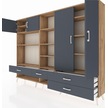 Arges Dolap 12 Raflı 4 Çekmeceli 4 Kapaklı 220x30x163 Çam-antrasi Çam-antrasit