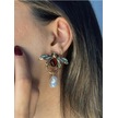 Arı Figürlü Taş Detaylı İncili Kadın Çelik Küpe Altın Renk, Gösterişli Ve Şık Tasarım Altın