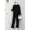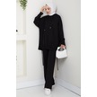 Tesettür İkili Takım Uzun Tunik Bol Paça Pantolon 4006-siyah Siyah