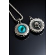 Arka Yüzünde Kuru Kafa Sembollü Mavi Ejder Gözü Paslanmaz Çelik Kolye Mavi